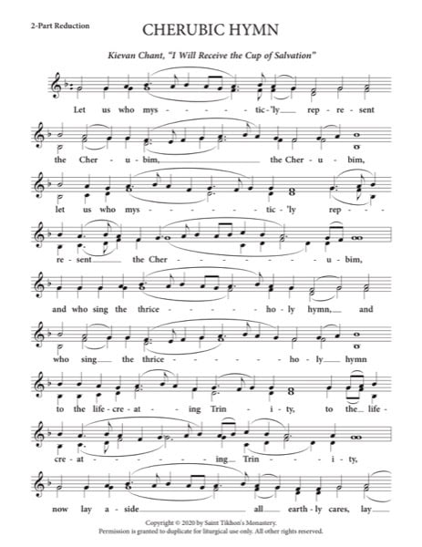 Cherubic Hymn – Kievan Chant, Special Melody “I Will Receive the Cup of Salvation,” 2-Part, 3-Part, SA, TB, SSA, TTB