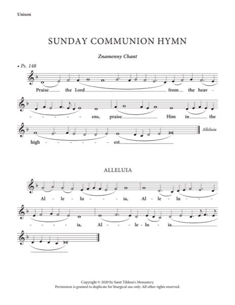 Communion Hymn (Sunday) – Znamenny Chant, Unison, S, A, T, B
