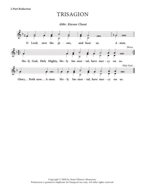 Trisagion – Abbreviated Kievan Chant, 2-Part, 3-Part, SA, TB, SSA, TTB