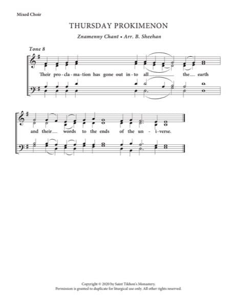 Liturgy Prokimenon (Thursday) – Znamenny Chant, Sheehan, Mixed, SATB
