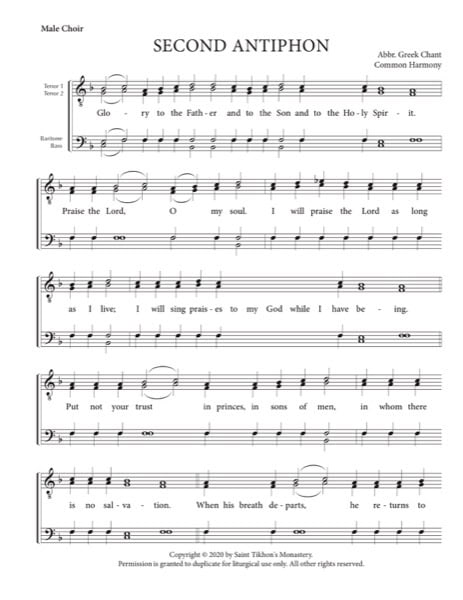 Second Typical Antiphon – Abbreviated Greek Chant, Male, TTBB