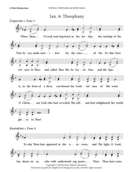 Festal Troparion & Kontakion (Theophany) – 2-Part, 3-Part, SA, TB, SSA, TTB