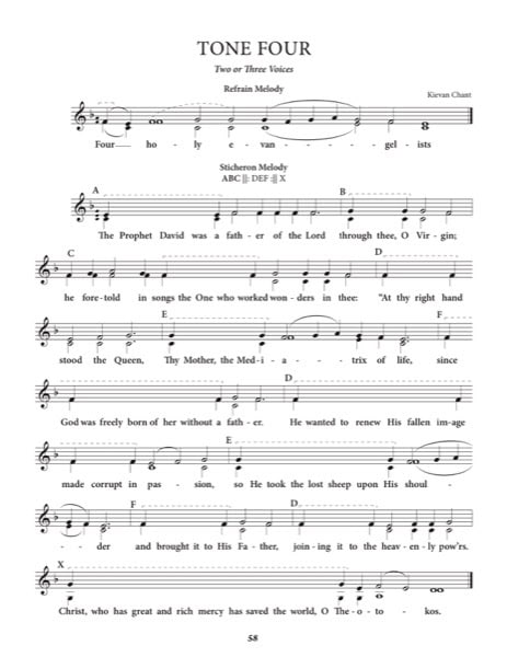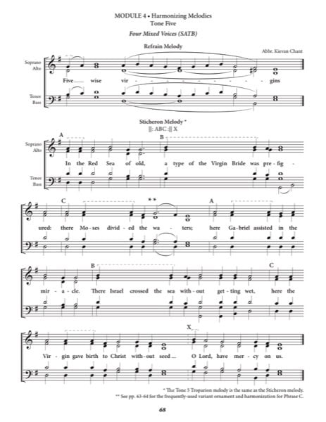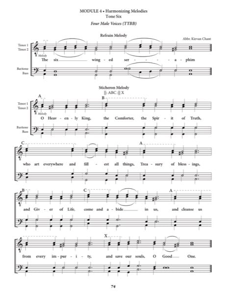 This draft volume is a workbook for learning the melodies for troparia, stichera, and psalm verses as they are sung at St. Tikhon’s Monastery and Seminary. Based on the teaching method used by Talia-Maria Sheehan at St. Tikhon’s Monastery Music Program, St. Tikhon’s Seminary, and the Artefact Institute, this book offers a modular approach to learning the tones and how to harmonize them. The melodies are presented gradually: first, as a single melody line; then in a flexible arrangement for two, three, or four voices; then they are given in four part harmony, as they would be sung by a typical church choir; finally, the melodies are presented in male choir arrangements.