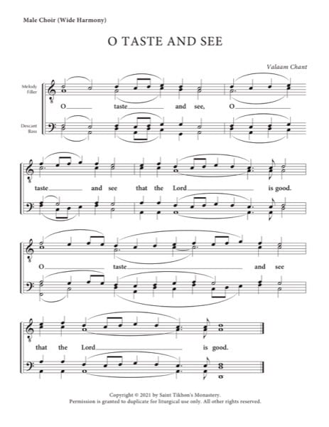 O Taste and See – Valaam Chant, Male, TTBB (Wide Harmony)