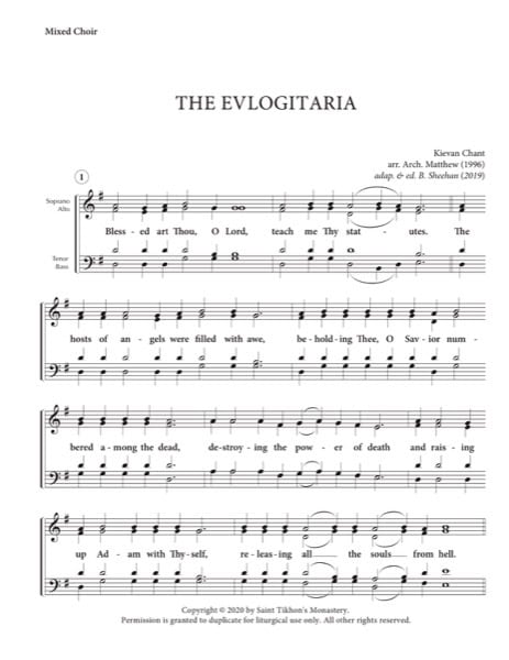 Evlogitaria – Kievan Chant, Archimandrite Matfei, Sheehan, Mixed, SATB