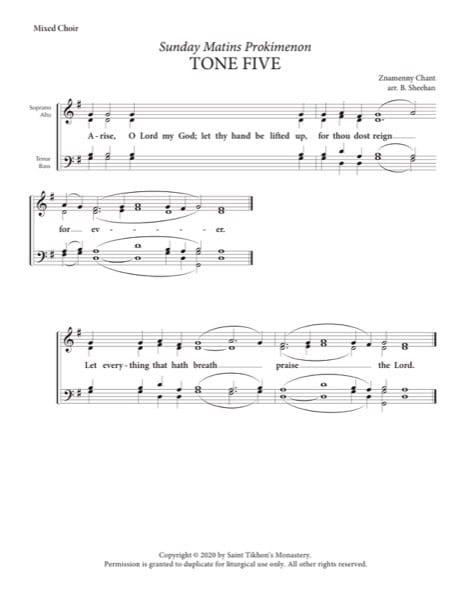 Sunday Matins Prokimenon — Tone 5, Znamenny Chant, Sheehan, Mixed, SATB
